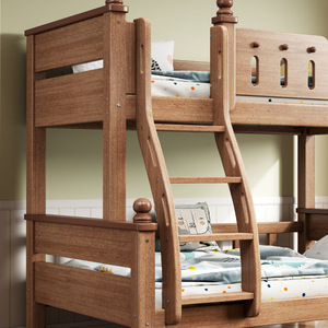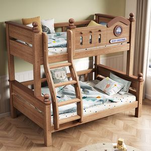 二段ベッド モダン シンプル ラバーウッド 二段ベッド 吊り下げはしご 二段ベッド 無垢材 ハイ&ローベッド 子供用ベッド ハイ&ローウッドベッド