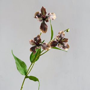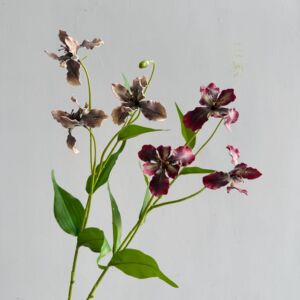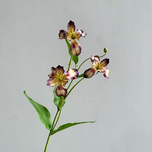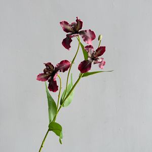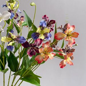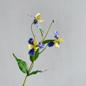 造花、油絵、3頭の小さなアイリス蘭、高品質ショッピングモールの窓、花と風景のアレンジメント、炎のユリ