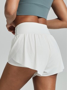 欧米のクロスボーダーの涼しさの速乾のランニングのショートパンツの女性の夏の薄いタイプの偽の2つの防走光のヨガのフィットネスパンツ