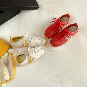 レトロ本革レッド道徳トレーニングシューズ女性のための 2025 新しい多用途レースアップラウンドトゥカジュアルスポーツシューズフラットフォレストシューズ