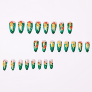 ミディアムロングブルーグリーン海底クラゲカラー24ピース新しいネイルアートパッチかわいいクロスボーダーヨーロッパとアメリカのモデル卸売ネイルアート