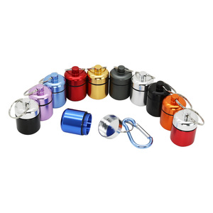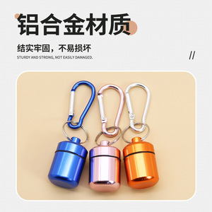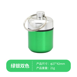 短くて太いアルミニウム製薬筒、密閉された金属製アルミボックス、キーリング付き、コイン収納、耳栓用アルミボトル