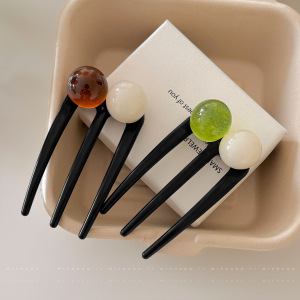 女性の後頭部に髪を結ぶための高級三歯ビーズU字型ヘアピン、毎日の通勤用のボールヘッドピンヘッドドレス