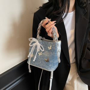 夏の人気のクロスボディバッグショルダーバッグ超人気バタフライバケットPUバッグ女性用2025新しいファッションニッチ多用途