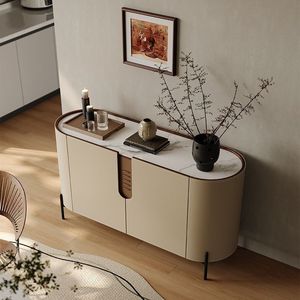 入户玄关柜意式极简岩板餐边柜马鞍皮进门储物柜客厅靠墙储物柜木