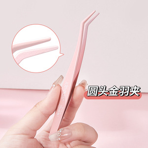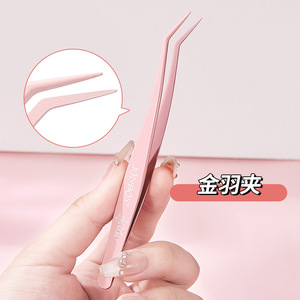 JONBOS 粘着防止つけまつげピンセット移植まつげクリップゴールデンフェザークリップまつげアーティストメイクアップツール