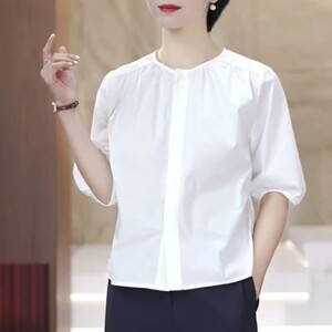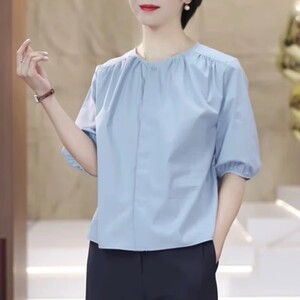 気質ラウンドネック半袖シャツ 2025 夏の新スタイルルーズ痩身外国スタイル多用途無地カジュアル韓国トップ