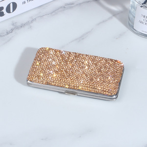 国境を越えて人気のある高級感のある両面ダイヤモンドがちりばめられたタバコ箱、女性向けの豪華でパーソナライズされたラインストーンタバコ箱、ハイエンドでクリエイティブなポータブルタバコ箱