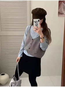韓国風新作無地シングルボタンニットショート丈アウター レディース ウール混重ね着 若見えベスト レディース 万能