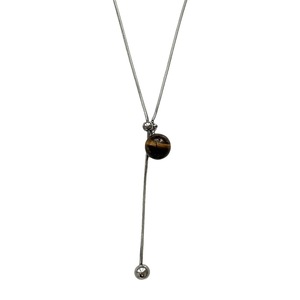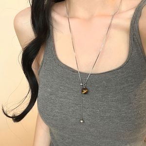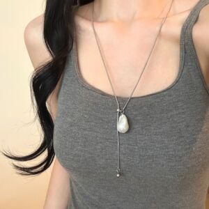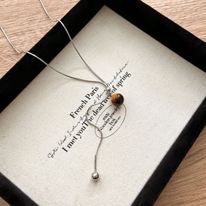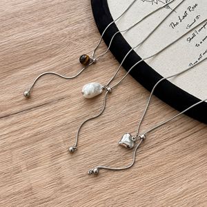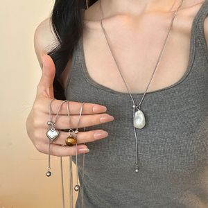 ニッチデザインタイガーアイストーンプルアウトチタン鋼ネックレスバロックパールハイエンドロングセーターチェーンジュエリー女性用