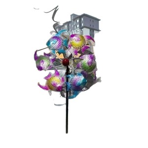 新款仿真小鱼风车户外庭院摆件阳台花园金属造景铁艺彩色旋转风车