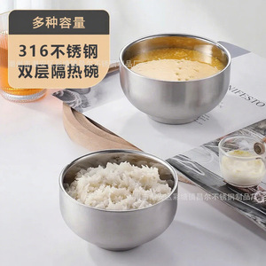 316 ステンレス鋼ボウル 304 ライスボウル家庭用親子ボウル二層火傷防止と落下防止スープボウル子供用栄養補助食品ボウルヌードルボウル