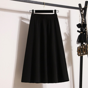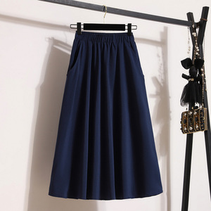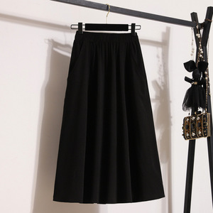 多巴胺新款松紧纯色高腰半身裙伞裙收腰显瘦胖mm宽松中长裙口袋款