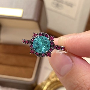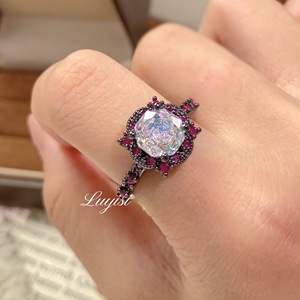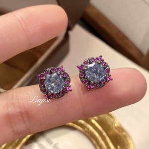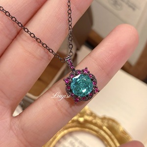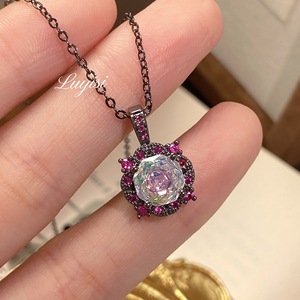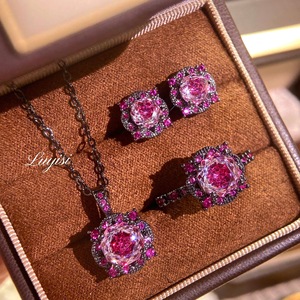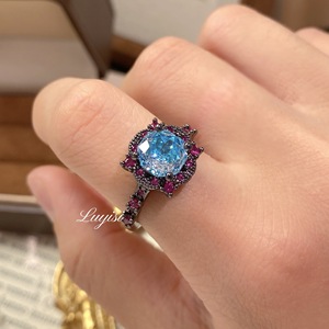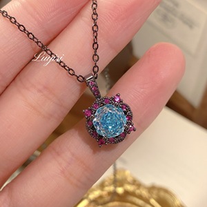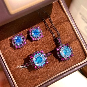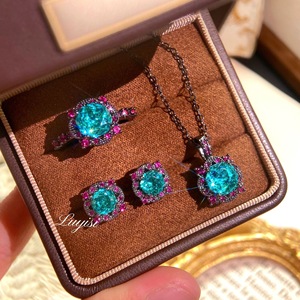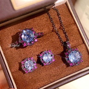 売れ筋八角ミレニアムローズカットシーブルーペンダント象嵌高炭素ダイヤモンドリングローズレッドブラックゴールドイヤリングセット