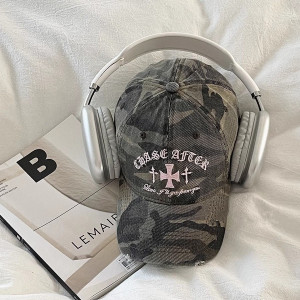 韓国ニッチレトロ刺繍迷彩ひさしキャップレディースストリートファッションブランドサンシェード多用途ソフトトップ野球帽小顔