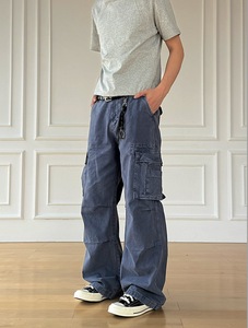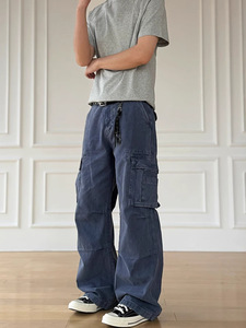 2025年新作エレガントヘビーデューティーウォッシュ加工オーバーオールフレンチブルーウォッシュ加工ルーズラージポケットワイドレッグ