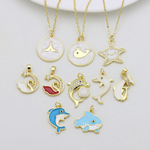オーシャンエレメントオイルドリップクジライルカヒトデ白鳥象嵌ジルコンパーソナライズされたファッションネックレスペンダントアクセサリー