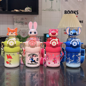イチゴクマ子供用魔法瓶カップ女の子人形首振りストローカップ小学生通学ポータブル大容量ケトル