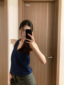 レトロチェック柄バックレスVネックホルターネックキャミソールレディース夏スリムフィットインナーホットガールデザイントップアウター