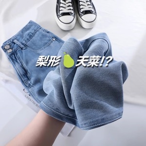 ライトブルーテンセルジーンズ女性の夏の新しい大きいサイズファットガールmmハイウエストストレートスリムドレープアイスシルクパンツ