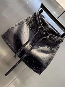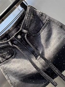 大码复古渐变烫钻牛仔半身裙女夏季胖mm高腰显瘦包臀a字短裙子