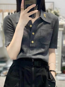 ポロカラーニットシャツ 2025 夏の新スタイルの女性の新しいスタイルのスリム半袖ウール半袖トップ気質ラペル