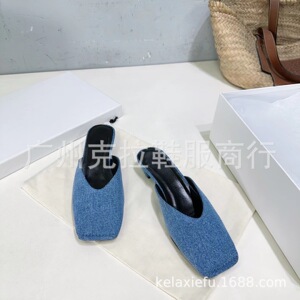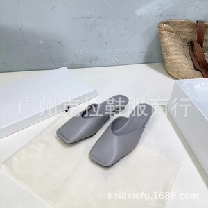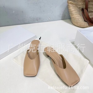 ハイバージョンニッチ2025夏本革シンプルスクエアトゥレトロスリッポン怠惰なローヒールトゥハーフスリップミュールスリッパ