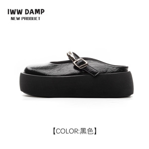 厚底スペースシルバーつま先ハーフスリッパ女性用 2025 夏の新しいスタイルのスリッポンメリージェーンシューズ女性用サンダルとスリッパ