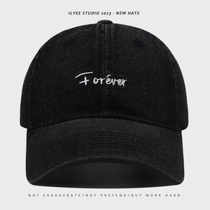 FOREVER 刺繍デニムベースボールキャップ ブラック