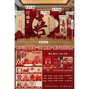 ZFNC32 新しい中国風の婚約アレンジメント装飾屋内フルセットの結婚式の装飾品用品写真撮影のお祝いの背景
