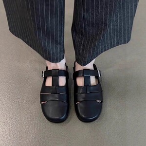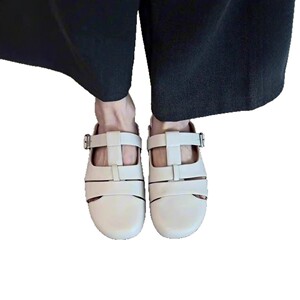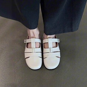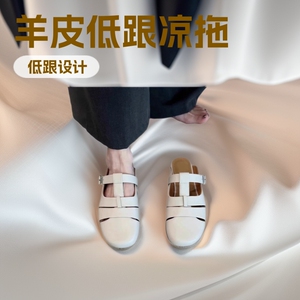シープスキンバージョン~~女性用フレンチローヒール中空通気性トゥキャップハーフスリッパ、夏用多用途通勤快適サンダル、女性用スリッパ