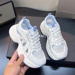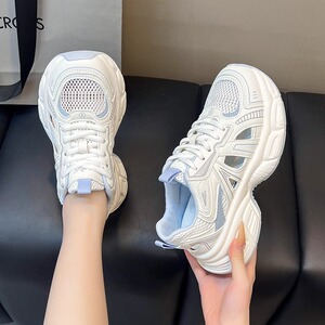 女性のための厚底中空お父さん靴 2025 夏の新しいホットスタイル多用途学生メッシュカジュアルスポーツ白靴女性のための