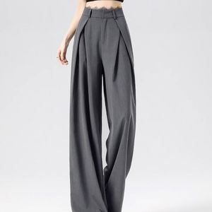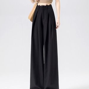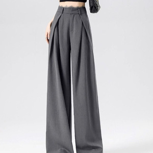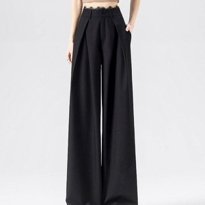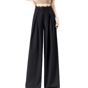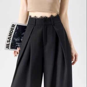 【在庫あり、レース無地ドア】グレースーツパンツレディース春新作プリーツレースハイウエストゆったりカジュアル