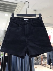 洋ナシ体型女性用黒デニムショートパンツ夏薄い大きいサイズ少し太いmmハイウエスト痩身Aラインワイドレッグホットパンツ