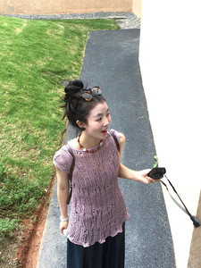 ニッチデザイン中空ノースリーブラウンドネックニットベスト2025夏の新しいスリムフィットで多用途な女性用トップ