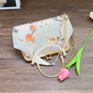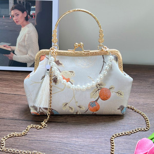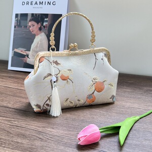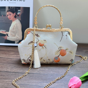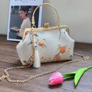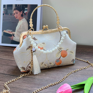 新しい中国風の漢服、中国風のチャイナドレスバッグ、古代スタイルのハンドバッグ、ゴールドバッグ、エスニックスタイルのレトロなショルダークロスボディバッグ