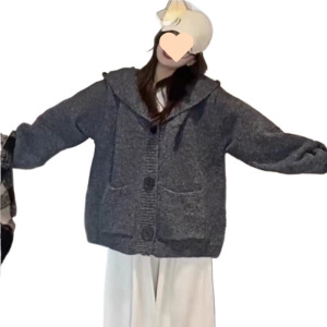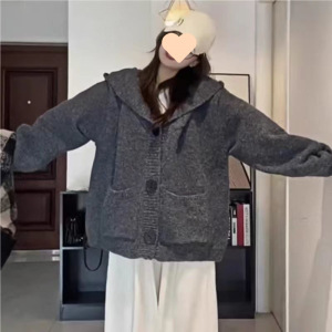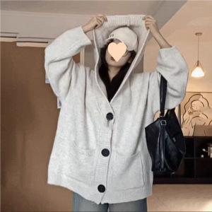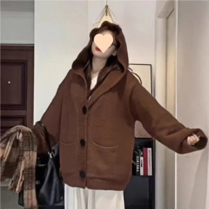 韩系软糯连帽针织开衫毛衣女2025秋冬新款慵懒宽松显瘦外套潮