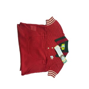 Gファミリー共同ブランドのクローバープリントストライプトリム半袖ポロシャツレディースレッドの正しいバージョン