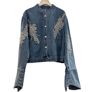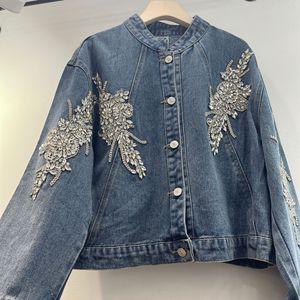 ヘビーデューティーダイヤモンドデニムジャケットレディースショート2025夏新作ルーズスリムヨーロピアンスタンドカラー長袖トップ