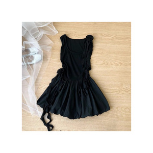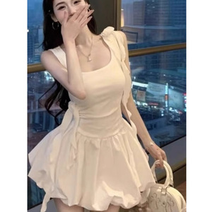 【トップス 40番手 クールシルク トレンド糸 1×1裾四方伸縮】リボンベストワンピース 夏のつぼみ
