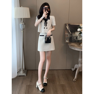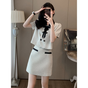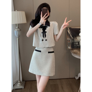 夏の年齢軽減、おしゃれでエレガントなスタイル、初恋、ピュアミルクスイートスーツ、女性用スカート2点セット