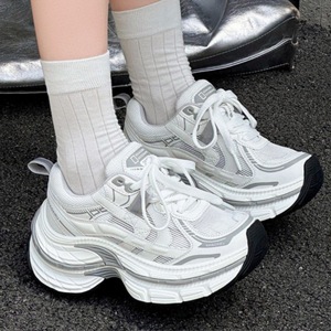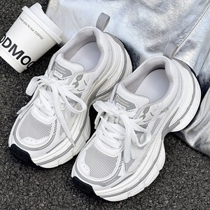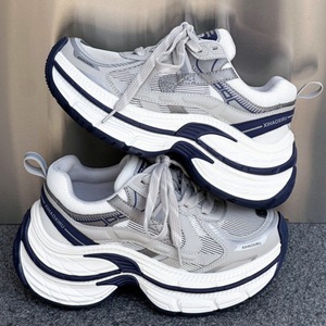 厚底パリお父さん靴女性のための 2025 夏の新スタイル本革メッシュ小人高通気性メッシュファッションカジュアルシューズ