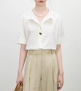 Fansilanen ホワイトデザイン半袖シャツ女性のための夏の 2025 新しいフレンチルーズ通勤トップ