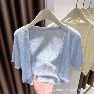 サスペンダースカートと女性用ショートカーディガン、夏用薄手半袖白日焼け止めブラウス、通気性のあるアイスシルクニットトップ