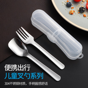304 ステンレス鋼の食器子供用スプーンとフォーク学生ポータブル食器かわいい高価値ショートハンドル食事用