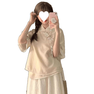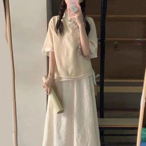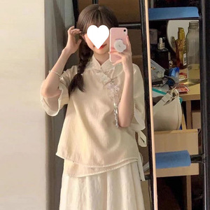 新中式国风上衣半身裙两件套装夏季改良汉服汉元素温柔系连衣裙子
