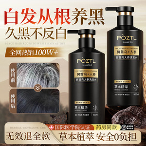 黒髪の男性と女性のためのポリゴナム マルチコルス シャンプー、黒霊芝の髪の栄養、黒髪のための本物の純粋な植物エキス シャンプー