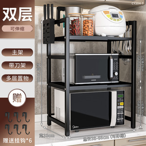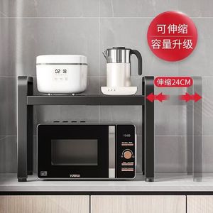 キッチン電子レンジ収納ラック格納式家庭用二層オーブンラックカウンタートップキッチン用品多機能収納ラック