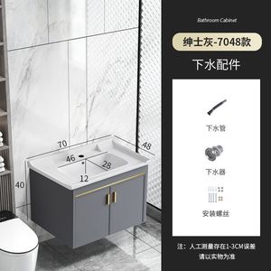 70x47cm [ジェントルマングレー] セラミック洗面器キャビネット - 排水アクセサリー