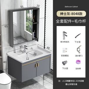 80x47cm [ジェントルマングレー] スレート洗面器キャビネット - フルセット + タオルバーミラーキャビネット